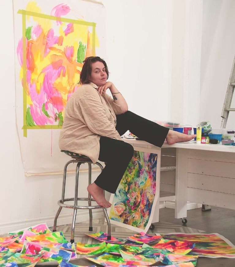 Léa Élise is a multidisciplinary artist born in Nantes and based between Magog and Montreal. Her work explores the connections between gesture, color, and community through textile and painterly practices.